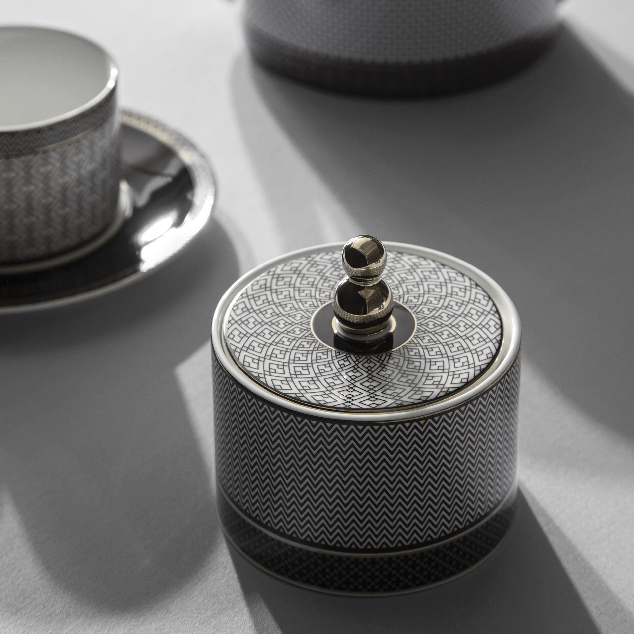 Lusson je ukrašena složenim geometrijskim dezenom u stilu Art Deco. Poklopac bombonjere ima figuralno oblikovanu ručku prekrivenu 24-karatnim zlatom. Neponovljivi Art Deco doživljava svoju renesansu, očaravajući elegancijom i spektakularnim dizajnom. Lussonov dezen je kontrastna geometrija u karakterističnim bojama ovog stila: kombinacija bele, crne i zlatne.