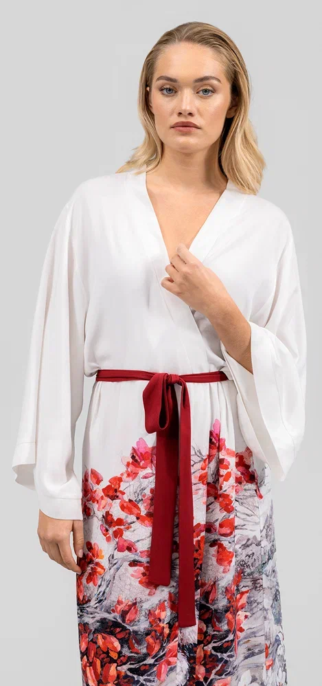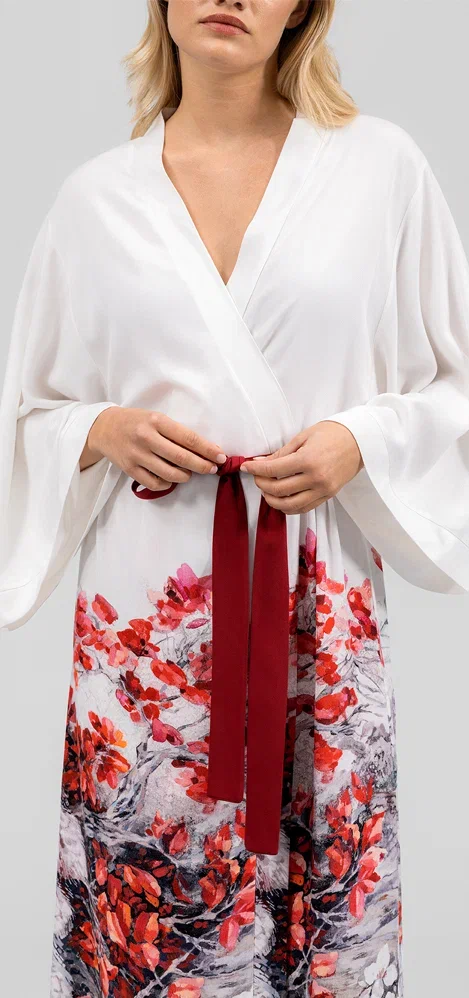 Delikatna i svilenkasta tkanina kimona Midaria napravljena je od prerađenih vlakana eukaliptusa – to je lagani i lepršavi SENSOTEX® materijal.